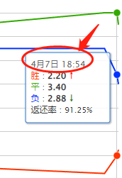 我们先研究一下第一处:主队告负的赔率从3.1下降至3.0,然后从3.0直接攀升到3.25,
