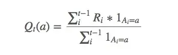 虽然很困难,但我们真的很想实现 q_∗(a) ,所以对于timestep t ,设 Q_t(a) 是 q_∗(a) 的近似值: