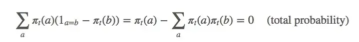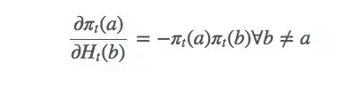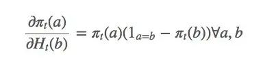 这只是整个梯度的一个偏导数。那么 b≠a 的动作呢?下面是省略计算过程的结果: