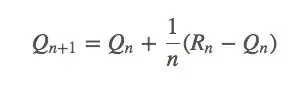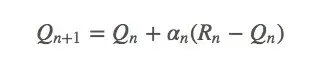 这些猜想都是正确的,但 (0,1] 这个阈值也有它存在的价值。我们在之前的 Q_{n+1}=Q_n+α_n(R_n+Q_n) 上继续计算,最后可以获得一项 α(1-α)_{n-i}R_i ,因为 α 小于1,所以给予 R 的权重随着介入奖励次数的增加而减少。