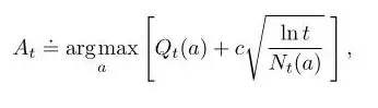 每选一次 a ,不确定项就会减少,分母 N_t(a) 增加;另一方面,每一次选择了 a 以外的动作, t 会增加但 N_t(a) 不会改变,不确定评估值会增加。