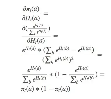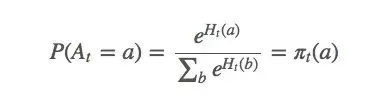 设动作偏好为 H_t(a) ,它和回报无关,只是一个动作相对于另一个动作的重要性。那么 A_t 应该符合gibbs分布(也就是机器学习的softmax分布):
