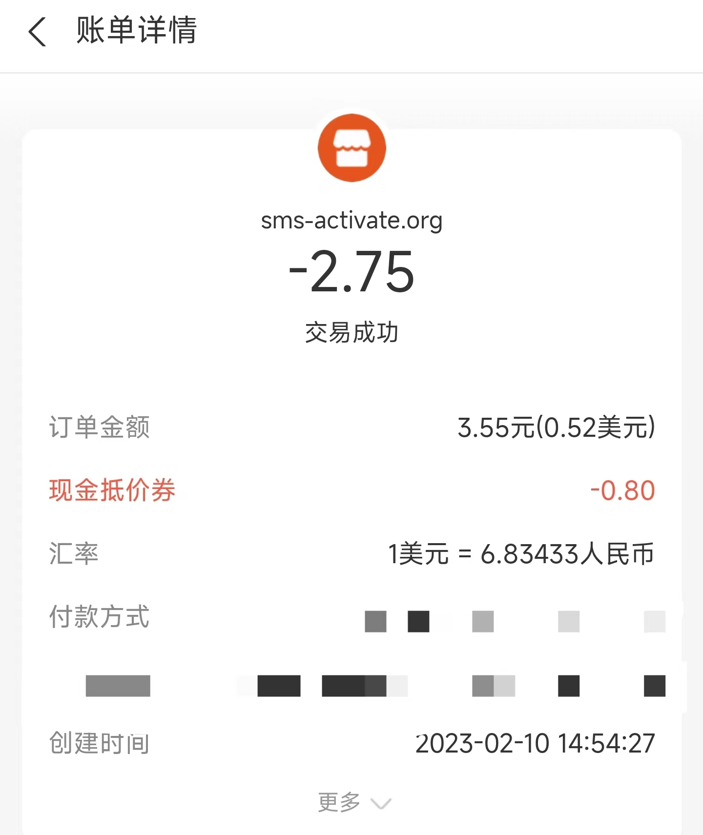由于账号中没有足够的余额,所以你还需要充值小部分金额,可以使用支付宝充值。1 美元约等于 78 卢布,购买一次接码服务绰绰有余,在几个月前还可以充值 0.5 美元,但现在最低要充值 2 美元,剩下的余额要么吃灰,要么只能找小伙伴用掉!??