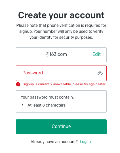 • Signup is currently unavailable, please try again later: 不要使用 163 邮箱,目前还可以使用 QQ 邮箱,最好使用 Google / Microsoft 账号。