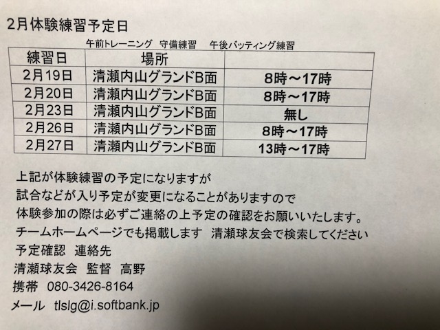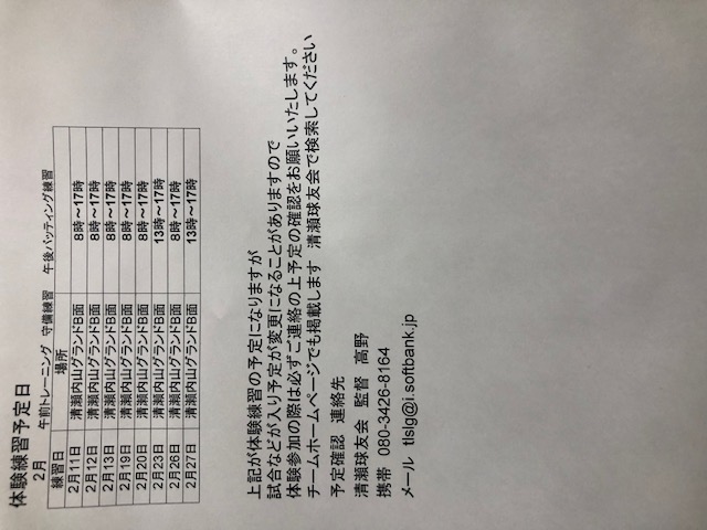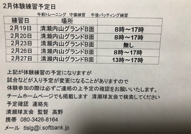1月30日 清瀬内山グラウンドB面 12時〜17時