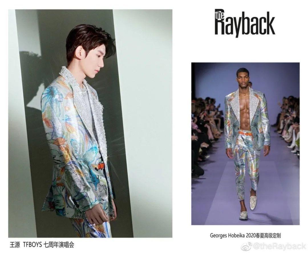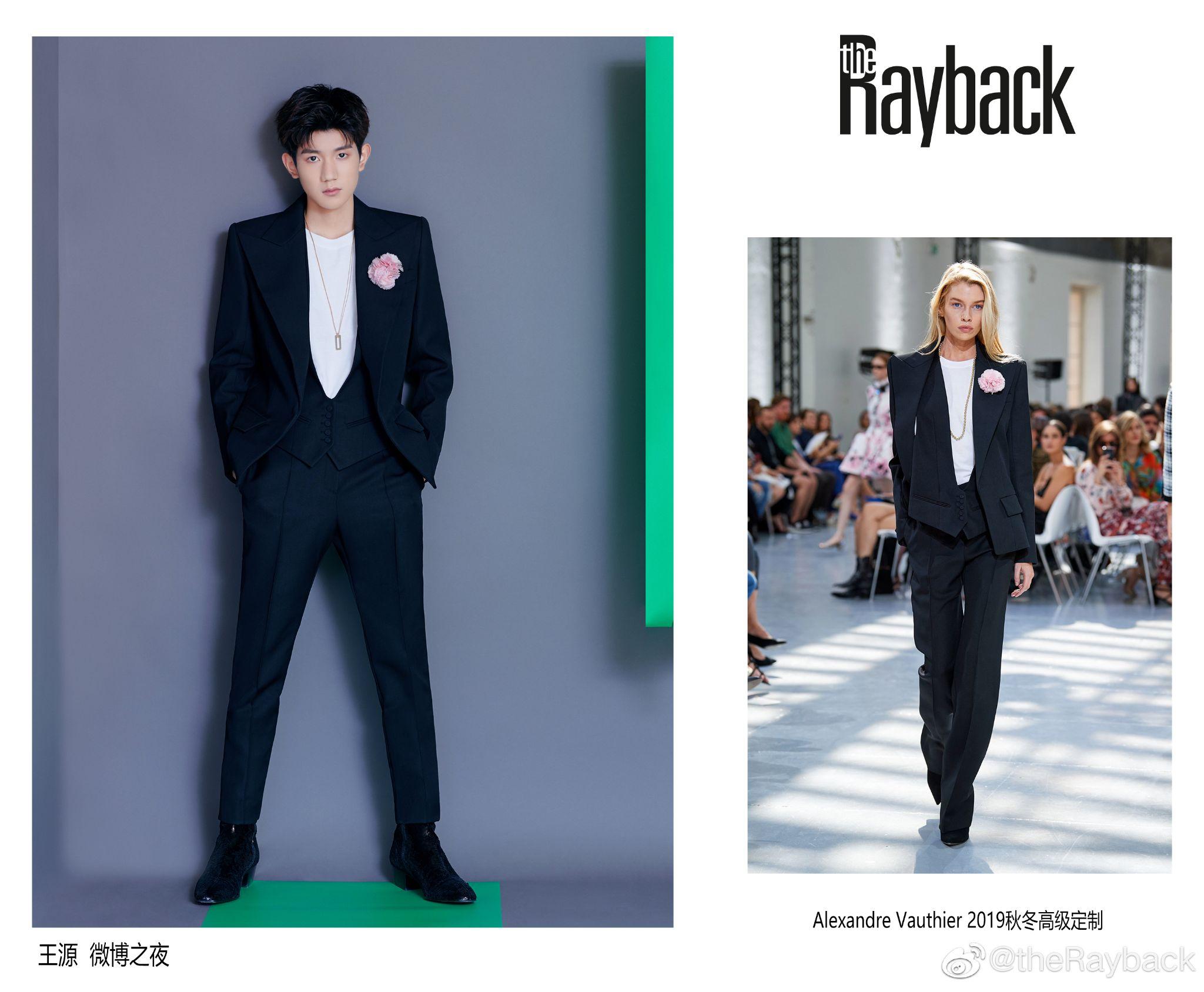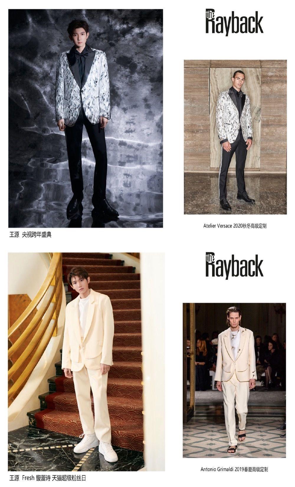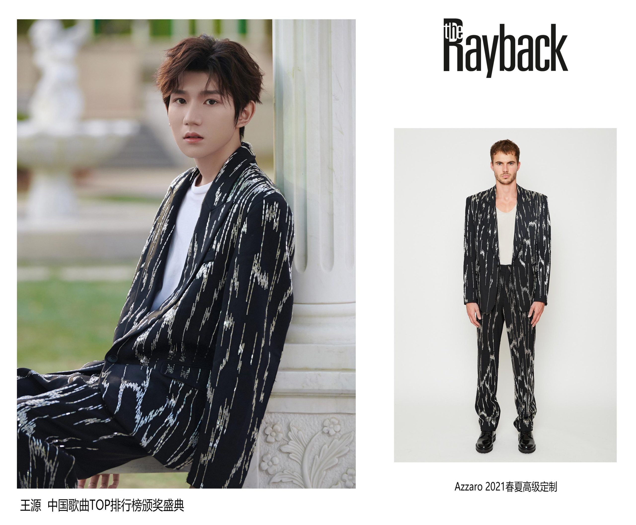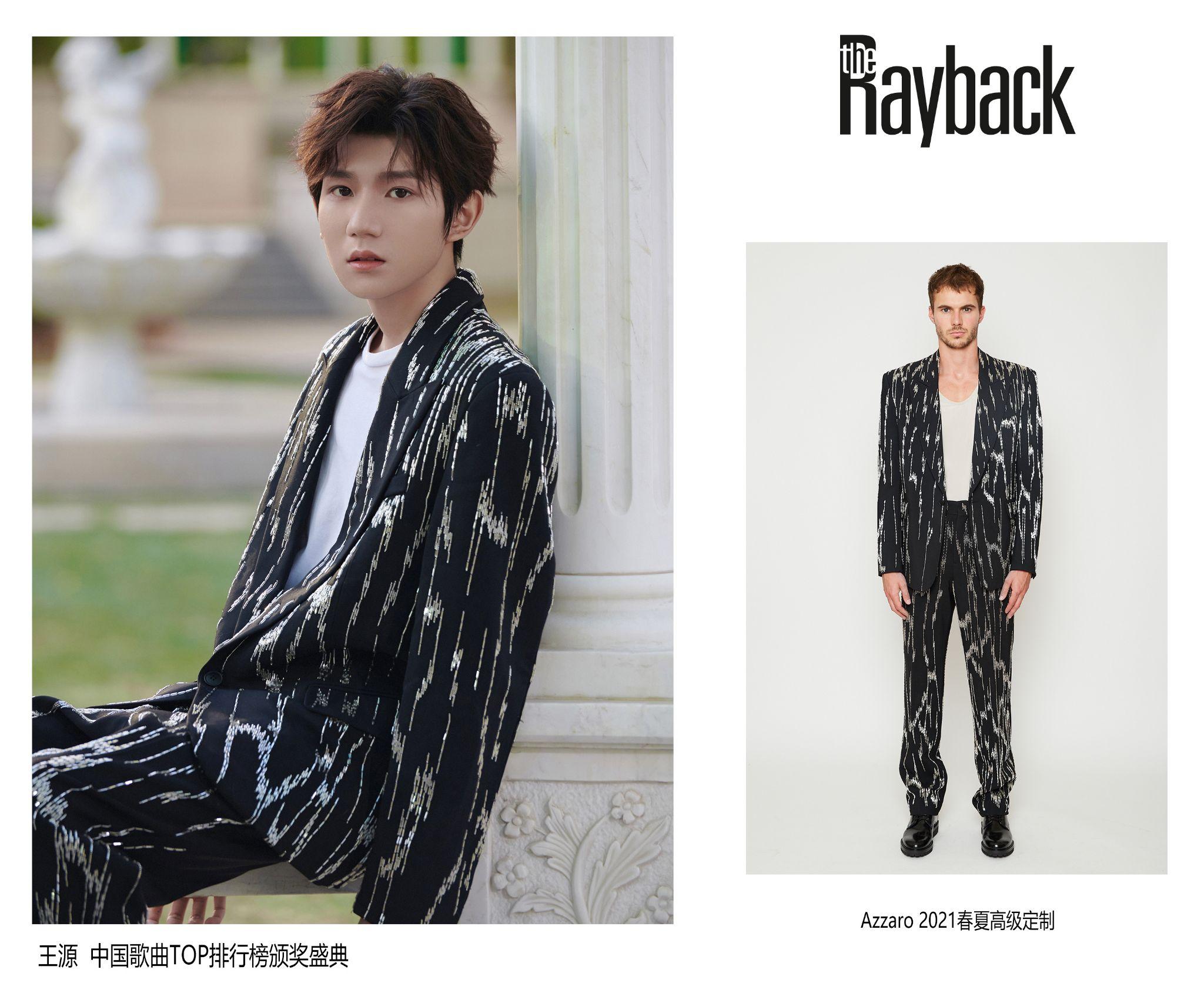 此次王源身上的着装为Azzaro 2021春夏高级定制,更是该高定未发布的全球首穿。王源穿后,于1月25日才发布。